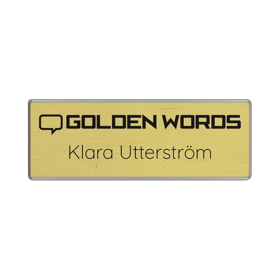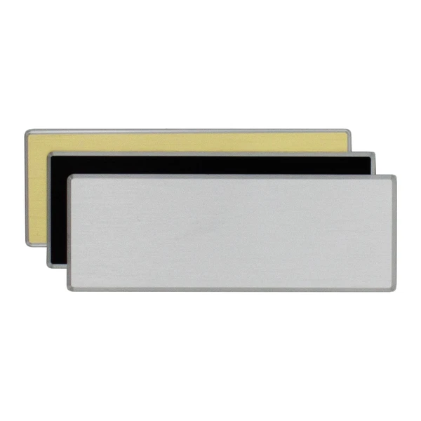 Venice är en rektangulär namnbricka i stilren aluminium med fasade kanter. Brickan har måttet 25x69mm och finns i färgerna guld, silver eller svart.
