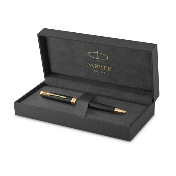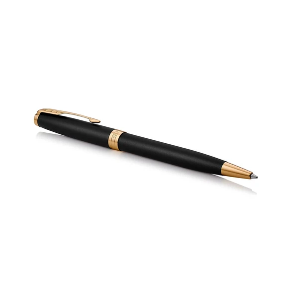 Sonnet Matte Black Kula är en elegant kulspetspenna med tidlös design och mattsvart lackfinish. Guldfärgade detaljer ger ett smakfullt uttryck, och pennan öppnas med en smidig vridmekanism. Varje penna handmonteras och kontrolleras noggrant för att säkerställa hög precision och en behaglig skrivkänsla. Levereras i ett exklusivt Parker-presentetui. Samtliga Parker‑pennor har 2 års garanti.