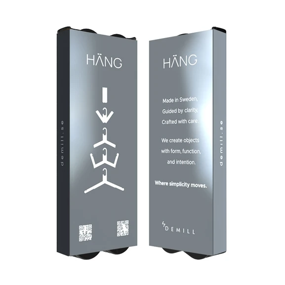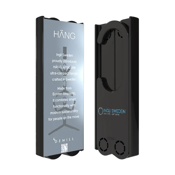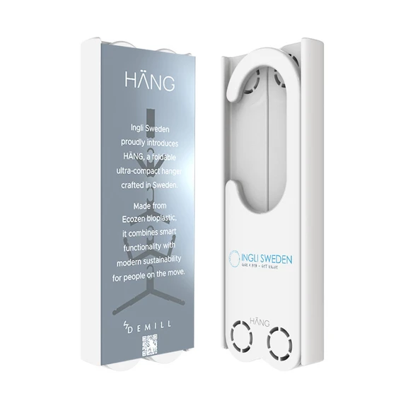 HÄNG Solid är en hopfällbar galge tillverkad av biobaserad copolyester, utvecklad för resor, hotell, detaljhandel och professionellt bruk. Kompakt format och full funktionalitet. Tillverkad och monterad i Sverige.