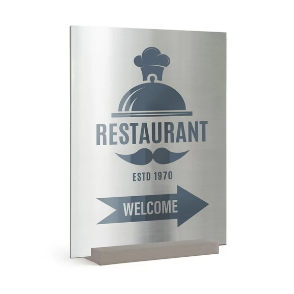 Stilig Aluminiumskylt i A4-format är en elegant skylt i mattborstad aluminium med generös informationsyta